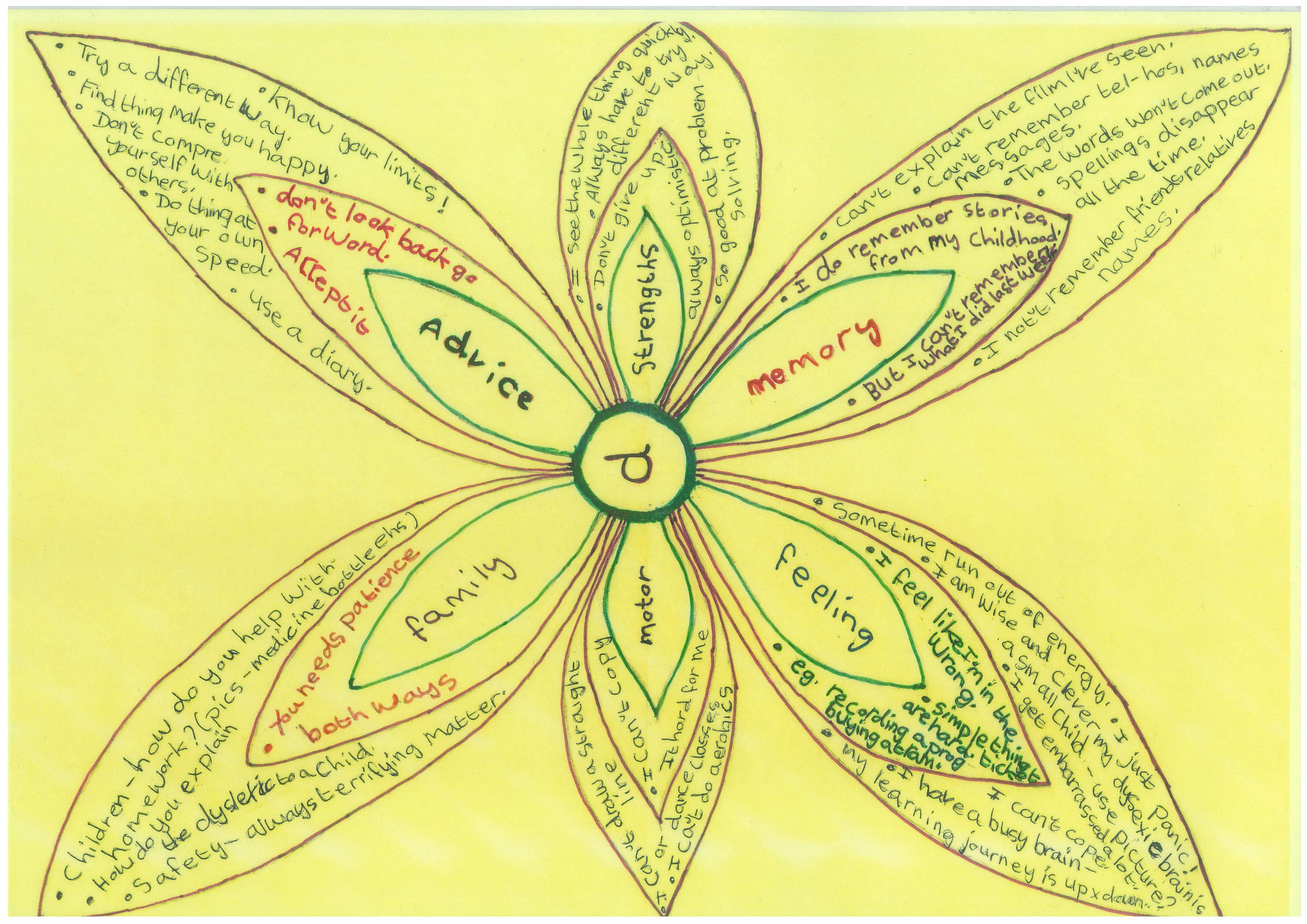 Distilling their experiences down onto one A3 sheet of paper helped people to accept their dyslexia and move on to create more positive versions of themselves.